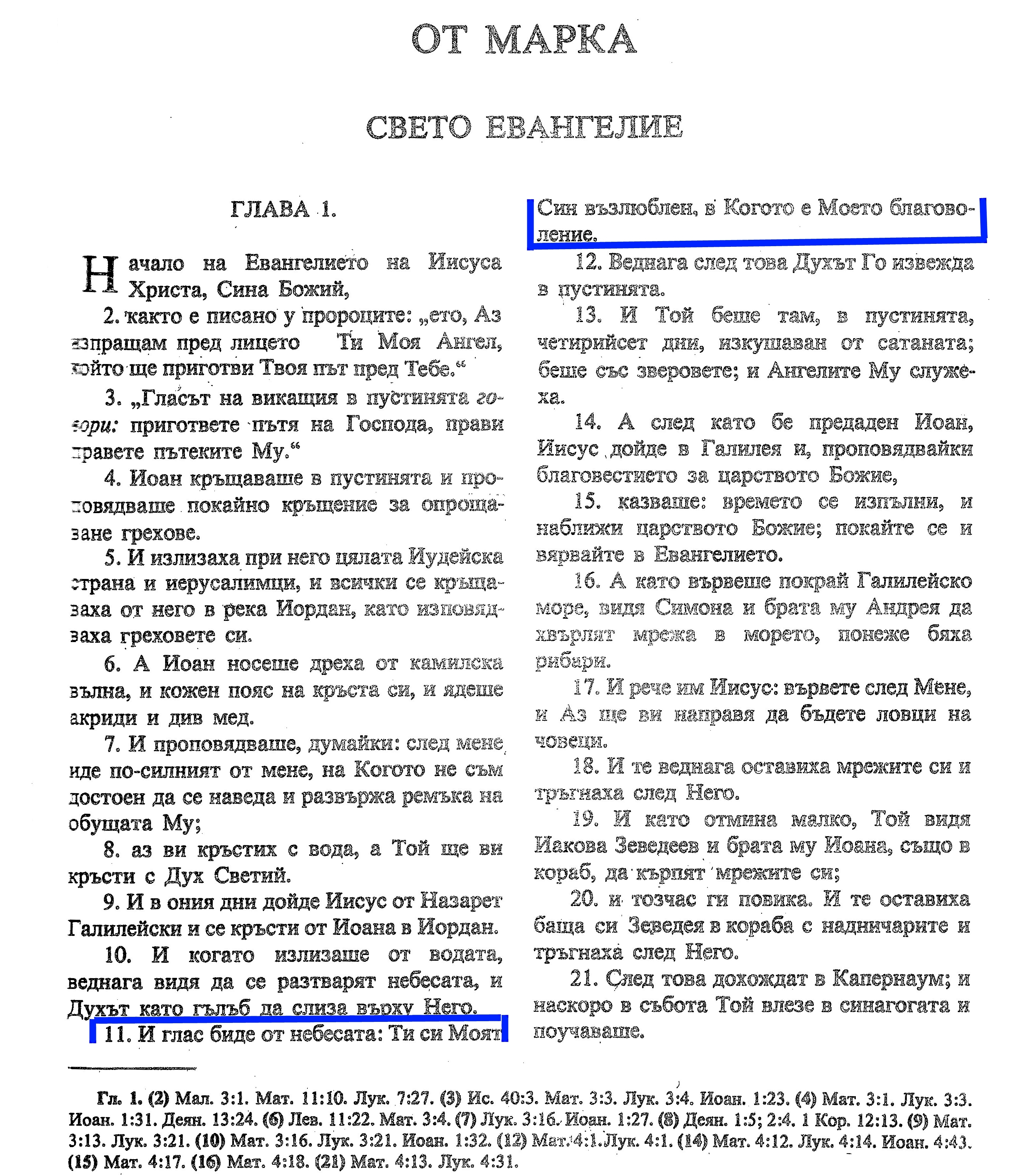 Най-добре е да ползваме Синодалното издателство на Библията – от 1925, 1982, 1991, 1993, 1998 г. Същевременно същият синодален превод предлага и Библия, София, 2011 г., издaдена от Българското библейско дружество. Корицата е същата, а текста е по изданието на Светия Синод от 1982 г.