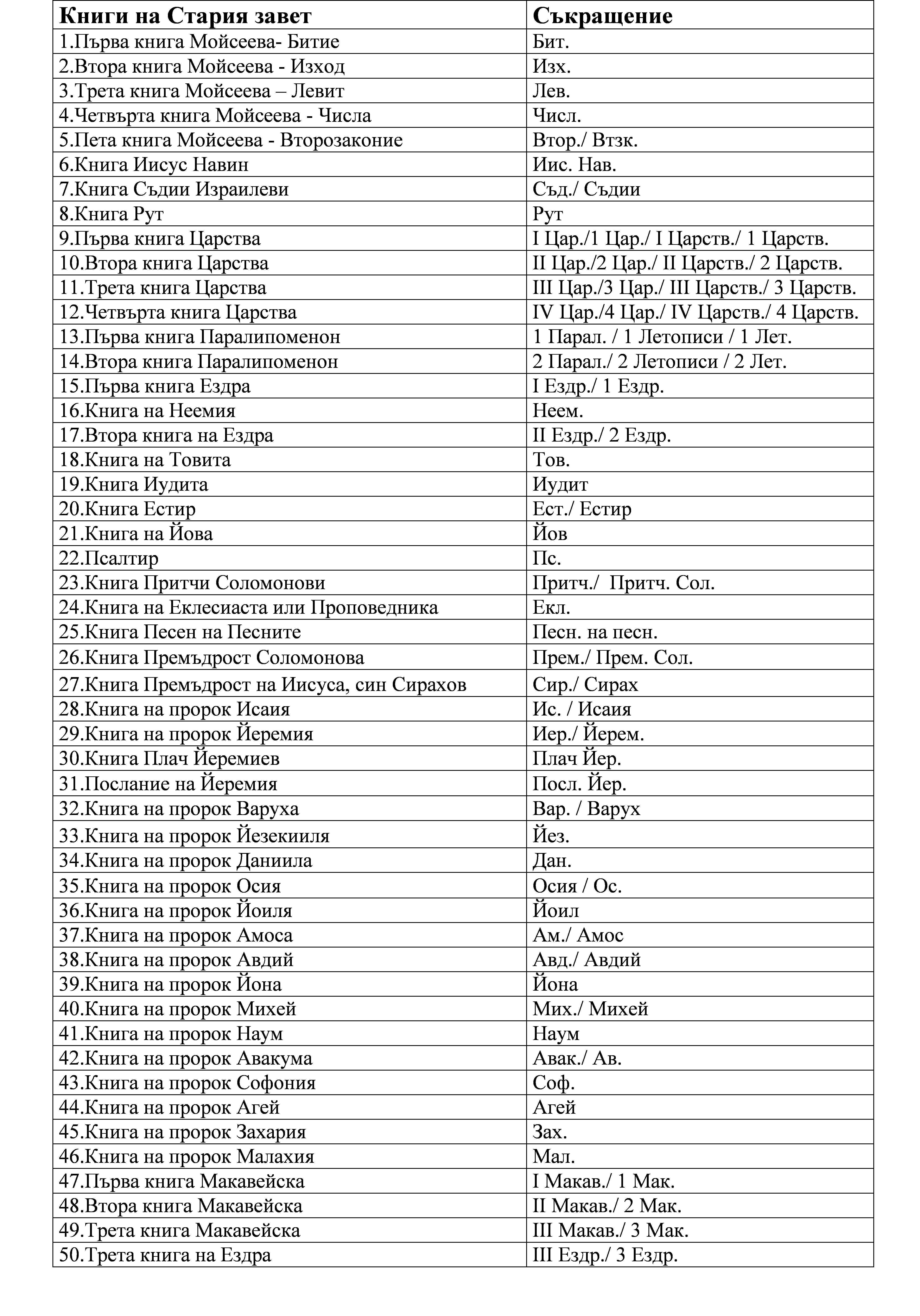Текстът на Стария завет съдържа на брой 50 книги, а Новия завет – 27.