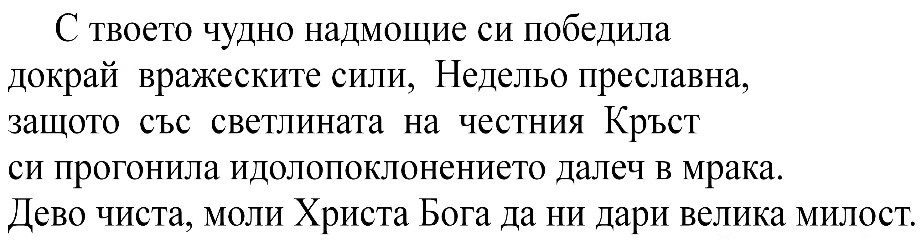 С хвалебни венци да увенчаем славните Седмочисленици – Кирила и Методия, Климент и Наум, Сава, Горазд и Ангеларий, които изгряха като светила и ни благовестиха Триединния Бог. Вие, непоклатни стълбове на българската Църква и боговдъхновени поборници на нашата реч, които прогонвате езическото бесовско учение, молете се на Христа Бога да утвърди нашата Църква и да дарува на душите ни велика милост.