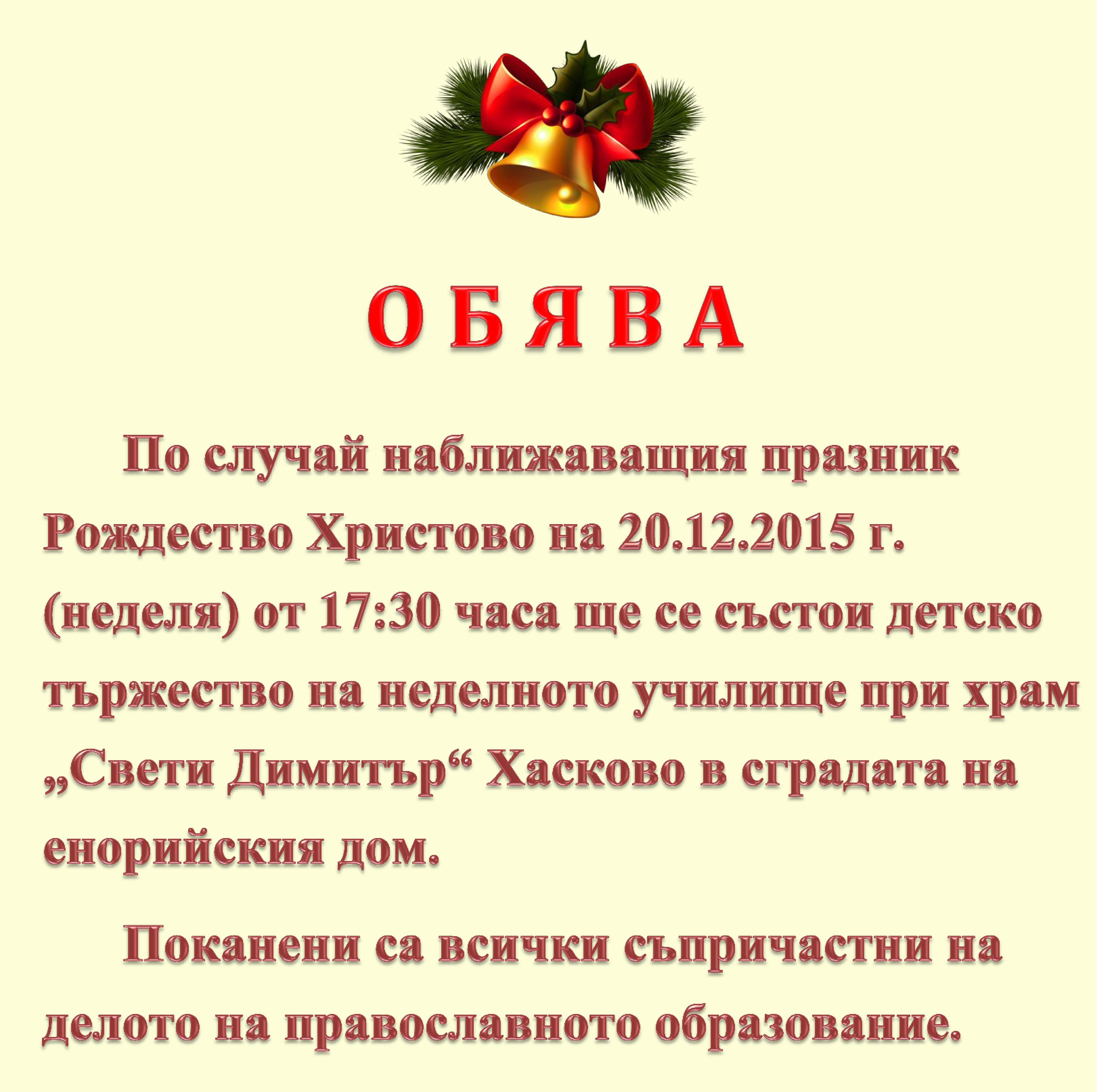 СЦЕНАРИЙ ЗА ДЕТСКО РОЖДЕСТВЕНСКО ТЪРЖЕСТВО, 2015