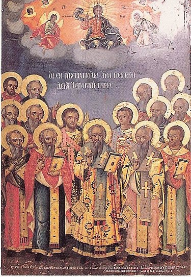 Това били епископите Тимотей и Теодор (участник в Първия Вселенски събор през 325 г, побягнали от Никея, свещениците Петър, Йоан, Сергий, Теодор и Никифор, дяконите Василий и Тома, монасите Йеротей, Данаил, Харитон, Сократ, Комасий и Евсевий.