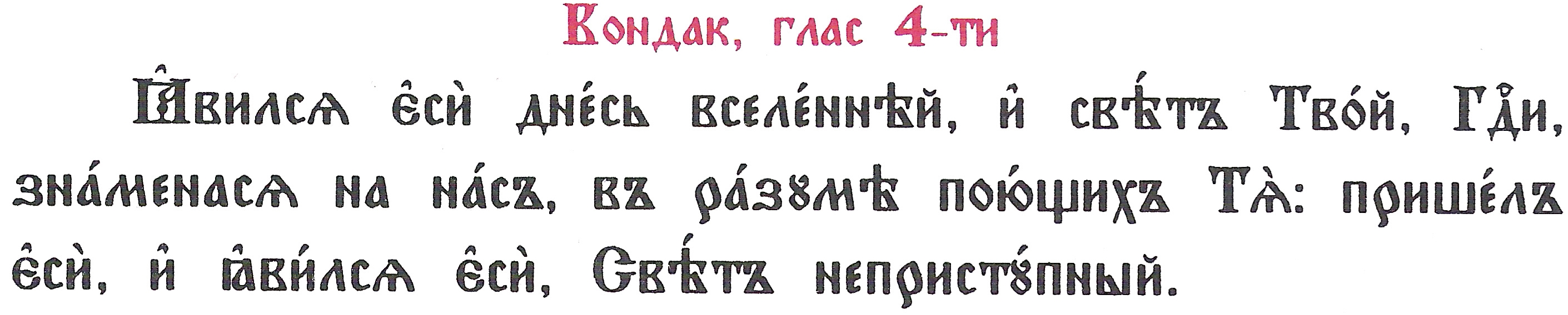 Явил си се днес на вселената и Твоята светлина, Господи, се отрази върху нас, които разумно Те възпяваме: Дошъл си и си се явил Ти, непристъпната Светлина.