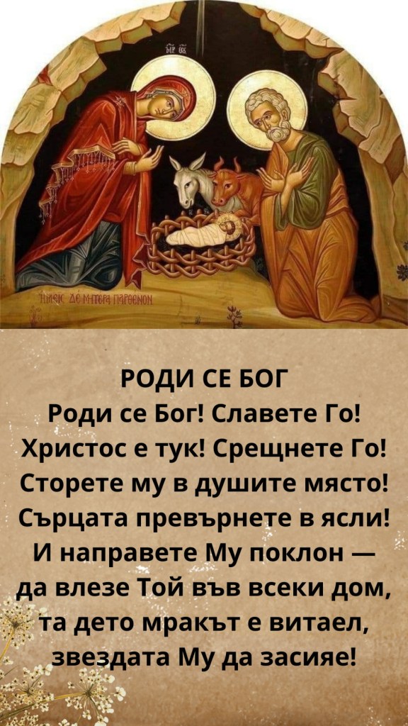 Празникът на Христовото Рождество е празник на светлината и новата надежда. От деня, в който Бог влезе в човешката история, живя между нас и обнови нашата природа, ние живеем в епохата на любовта и благодатта, епохата, в която Бог отново ни призовава „от тъмнина в чудната Своя светлина“ (1 Петр. 2:9). И затова – заедно с богопросветения Роман Сладкопевец – в единомислие и с неизказана радост и благодарност изповядваме и свидетелстваме заедно с цялата света Църква, че „Девата днес ражда Свръхестествения и земята принася пещера на Непристъпния, ангелите заедно с пастирите славословят, а мъдреците пътуват със звездата, защото заради нас се роди Младенец: предвечният Бог“ (Кондак, глас 3).