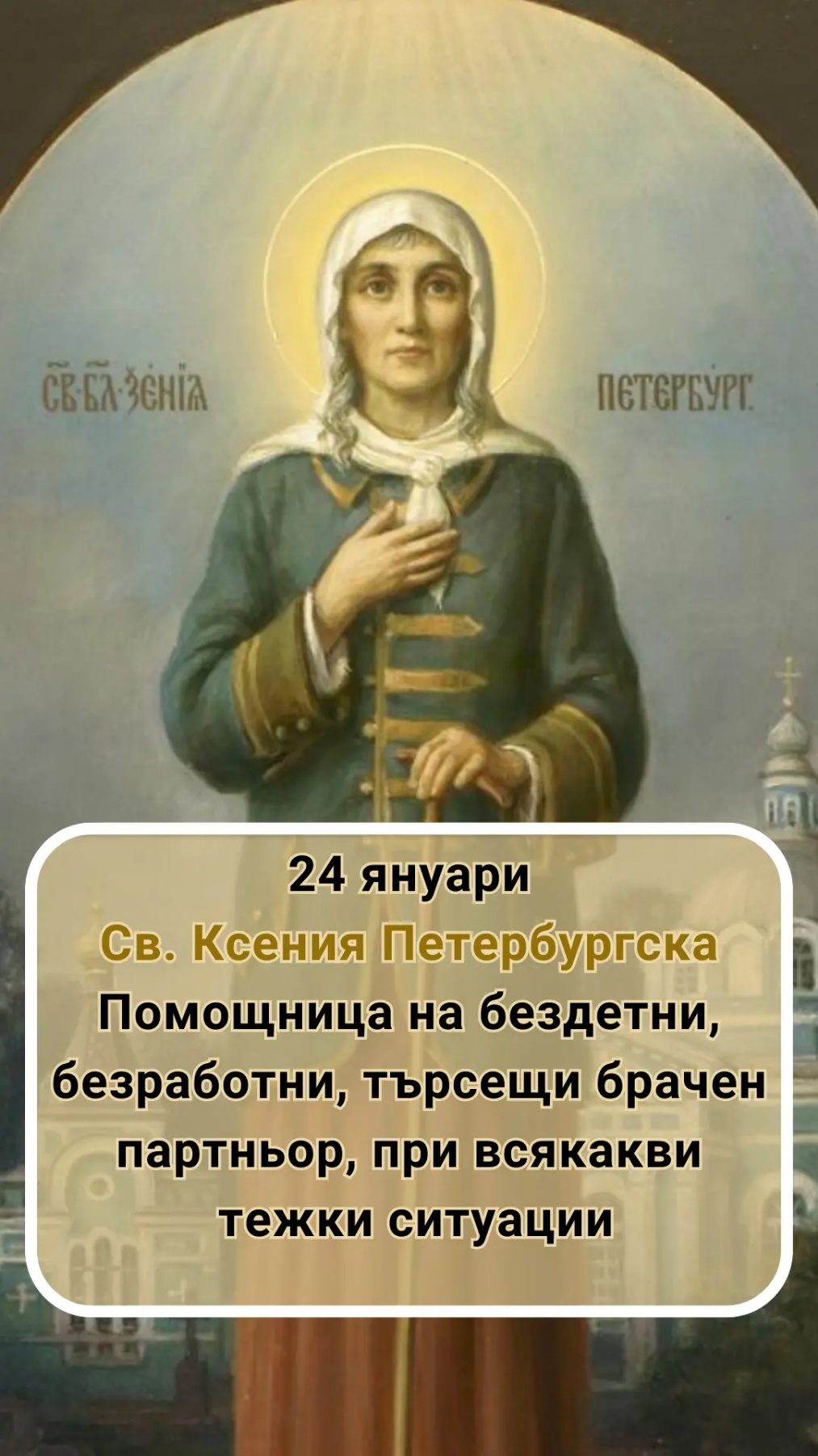 Света блажена Ксения Петербургска Posted on януари 23, 2025 by svetlinatanahrama Споделяне: Click to share on X(Отваря се в нов прозорец) X Споделяне във Facebook(Отваря се в нов прозорец) Facebook Харесвам Зареждане... Свързани