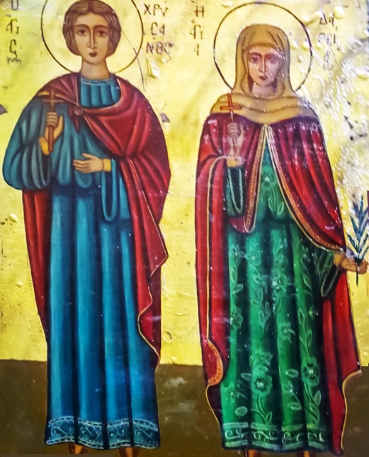 Хрисант живял в 3 век. Като юноша той се учил и възпитавал при най-знаменитите философи и бидейки надарен с големи способности, той бързо преуспявал във всички науки с голямо прилежание. Между другите книги Хрисант попаднал и на светото Евангелие, което той прочел с внимание. Това четене силно подействало върху душата на момъка. С цялото си сърце той повярвал в Господа Иисуса Христа и приел свето кръщение. Това стигнало до неговите роднини и те много се разтревожили. Неговият баща Полемий положил много усилия да отвърне сина си от Истинния Бог но нищо не помогнало. Най после той решил да сгоди сина си за една езичница на име Дария, като се надявал тя да го отклони от Бога. Но станало точно обратното – Дария повярвала в Господа Иисуса Христа и приела свето кръщение. Скоро след това Полемий умрял. Тогава двамата започнали да живеят само за служение на Бог и полза на ближните, усърдно проповядвайки Евангелието и обръщайки езичниците. Те се поселили в два отделни дома, устроени по подобие на манастирите. В единия дом Дария приемала повярвалите девойки, молила се с тях и изучавала Божия закон. В другия дом се поселил Хрисант с новообърнатите християни, които подобно на него се били отрекли от суетата на света. Тъй минали няколко години. Най-после на римският управител донесли, че Хрисант и Дария обръщат езичници в християнската вяра. Той заповядал да уловят Хрисант и Дария и да ги предадат на мъчения, ако не се поклонят на идолите. Повелята му била изпълнена. Но Бог чудесно пазел служителите си: яките въжета, с които ги свързвали, сами се разкъсвали и железните окови се разпадали. Станал свидетел на силата Божия, съдията Клавдий, който ги измъчвал, изповядал Господа Иисуса Христа за истинен Бог и приел свето кръщение заедно със жена му Илария, синовете му Иасон и Мавър и много войници. Това станало известно на императора, който заповядал да удавят Клавдия в морето, а синовете му и повярвалите войници да накажат смъртно. Хрисант и Дария били закопани живи в 284 година. Често след това християните се събирали за молитва на онова място. Веднъж в деня на светите мъченици много християни се събирали на молитва в намиращата се близо пещера. Императорът узнал за това и заповядал да засипят входа на пещерата и всички християни, между които се споменават презвитер Диодор и дякон Мариан, умрели мъченически. Тяхната памет, както и паметта на Клавдий, Илария и синовете им се чества в деня на св. мъченици Хрисант и Дария – на 19 март.