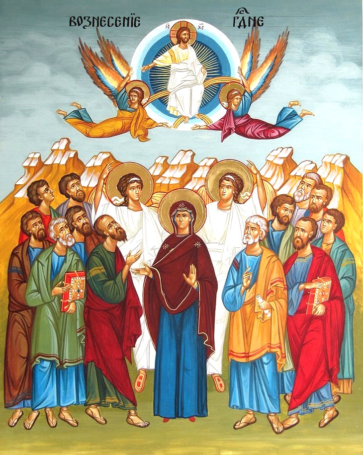 Възкръсналият Спасител, пред очите на Майката Божия и на множество Свои ученици, се възнася от планината Елеон към Царството на Отца. Възнася и тази човешка природа, която Той доброволно прие при Своето Въплъщение.