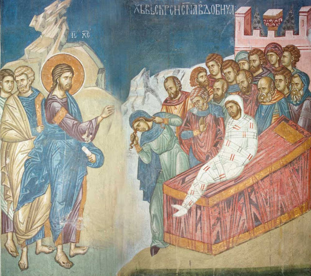 Свети евангелист Лука разказва в своето евангелие за велико чудо, сторено от нашия Господ Иисус Христос. Спасителят възкресява починалия син на една нещастна вдовица, останала сам-самичка на света. Това се случва пред градските порти на малкото галилейско градче Наин, когато идещият Богочовек, съпроводен от апостолите, вижда скръбното погребално шествие. Евангелистът съобщава, че Христос се е смилил пред трогателната гледка. Да, Онзи, чрез Когото всичко е станало, е приел пълнотата на човешката природа. И Той най-добре може да се вчувства в страданието на ближните. Той най-горестно усеща похищението на чуждия – врага на човека, човеконенавистника дявол, чийто слуга е смъртта. Всички човеци са Божии чада, украсени с Неговия образ, а ето – чадата са пленени от зъл и безпощаден враг – от смъртта. Това стана след грехопадението на прародителите Адам и Ева – в света навлезе грехът, болестите, старостта и смъртта. Вместо да се радва на своето справедливо дарено от Бога владичество над сътворения свят, човекът става тленен, преходен и грехолюбив. Каква горчива участ на отреденото за почест, величие и любов човешко създание. Христос, приел в пълнота човешката природа, станал подобен нам във всичко, освен в греха, Христос съпреживява болката и ужаса на човешкото същество, изправено пред тази непоправима трагедия – смъртта на любим човек. Цялата мъка на тая жестока загуба, всичката жалост на съвършената човечност у Спасителя, е предадена от свети Лука кратко и ясно: „Като я видя Господ, смили се над нея и рече и: Не плачи.“ Така и ние сме утешени, защото макар и смъртни, безсмъртни и облечени в нетление ще можем да се върнем в рая, отново отворен за нас. Там ни чакат Майката Божия, ангелите и светиите, там е невечерен ден, защото Божията светлина огрява вечно, там са нашите починал сродници, които са смогнали да се покаят, там са починалите кръстени наши невръстни чада. Без страх, че ще се оскверни, както повелява Мойсеевия закон, Всевластният Живот се докосва до погребалното носило. Всемогъщият Възкресител се обръща към покойника с думите: “Момко, тебе думам, стани“. Така Христос се обръща и към всяка потънала в смъртен сън душа, към всеки човек, доведен до смърт, преди смъртта, от разрушителната сила на греховете си, така Христос извиква всеки да се съживи в духоносната сила на покаянието. Все още сме тук, на този свят, все още е възможно нашето възкресение от мрачния греховен сън. Защото, макар и християни, макар и често идещи на църква, има много още да се желае, за да станем по-бели от сняг, както се казва в 50 псалом покайния. Дано Господ, Който всекиму е оставил свободата да избира, дано Той да възкреси и нашите умъртвени от грехове души. Божието благословение да е с всички вас!